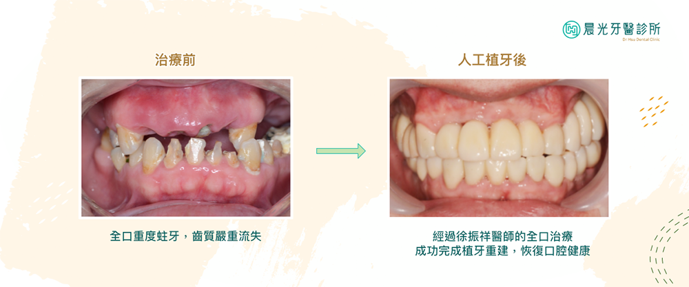 晨光牙醫團隊由前植牙醫學會理事長徐振祥醫師帶領,專注提供專業、舒適、精準、安全的⼈⼯植牙療程,並保障患者權益,使⽤世界前五⼤品牌的⼈⼯牙根與骨粉,提供原廠證明及使⽤保固,我們的⾃信來⾃於專業⽤⼼,為您提供最安⼼的保障!