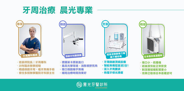 【晨光牙醫診所 7 ⼤牙周病治療特⾊】