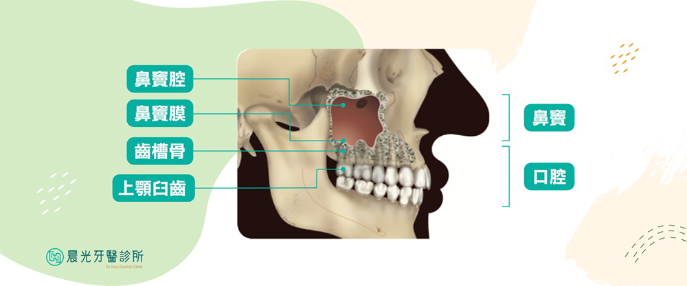 「上顎竇」是⼀個位在上顎後牙區的上⽅⼤型⿐竇腔。