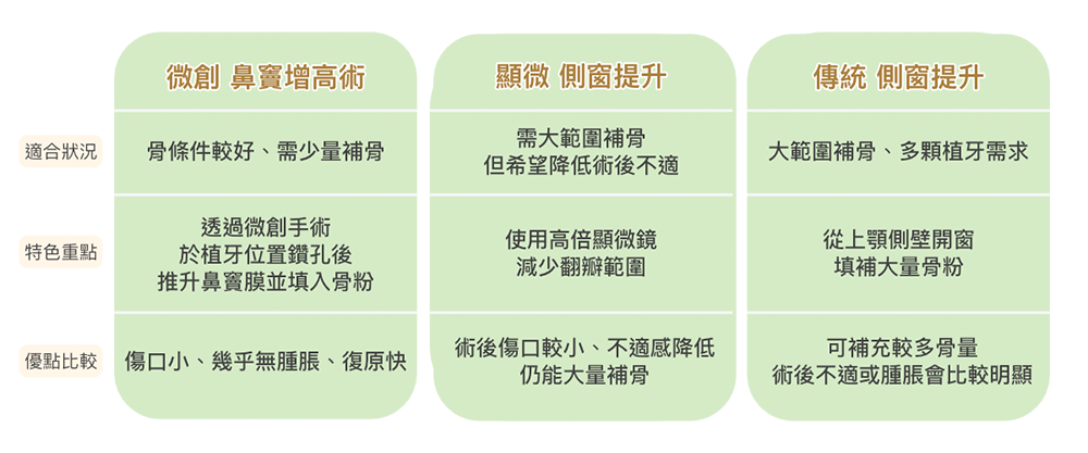 【上顎竇增⾼術|三種術式】