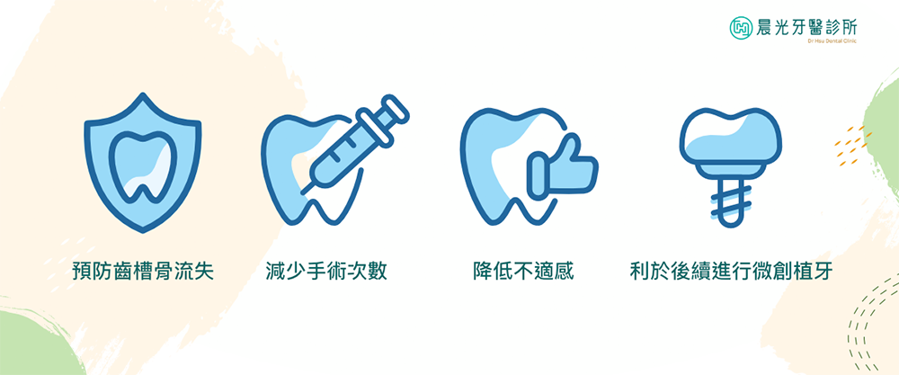2.減少⼿術次數:拔牙與補骨為同⼀創⼝,節省癒合時間