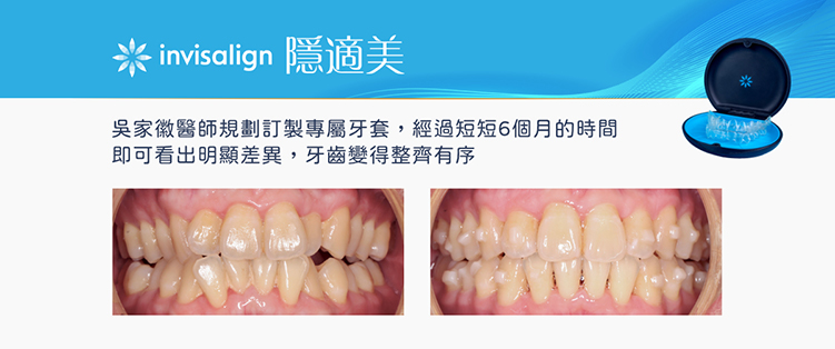 隱適美(Invisalign)是⼀種透明、可摘戴的矯正牙套,採⽤數位3D技術量⾝打造個⼈化的矯正計畫。透過⼀系列透明牙套逐步調整牙⿒位置,達到矯正效果。